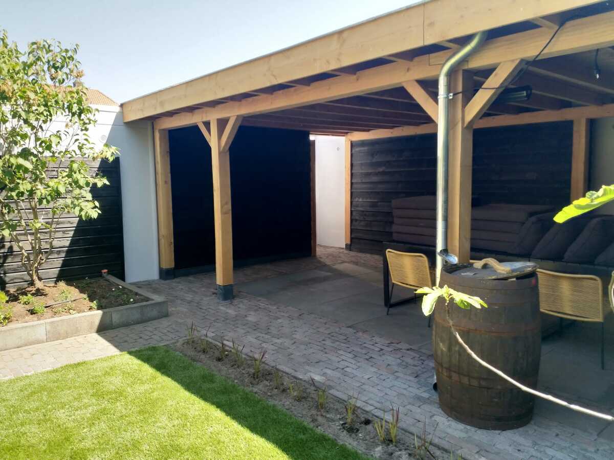 Wilt u het genieten van het buitenleven verlengen? Kies dan voor een op maat gemaakte overkapping van duurzaam Douglas hout van Hoveniersbedrijf Mark Bastiaanssen:
