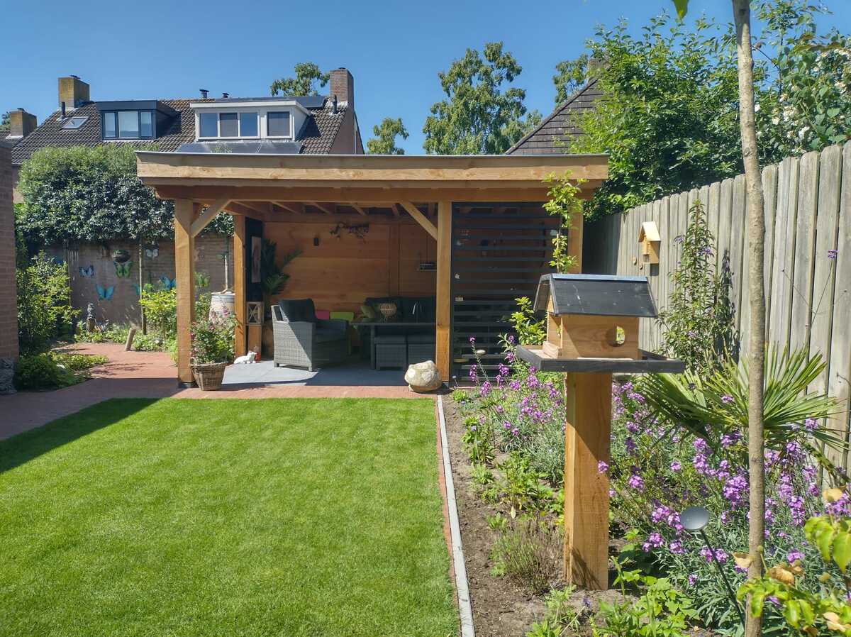 Wilt u het genieten van het buitenleven verlengen? Kies dan voor een op maat gemaakte overkapping van duurzaam Douglas hout van Hoveniersbedrijf Mark Bastiaanssen: